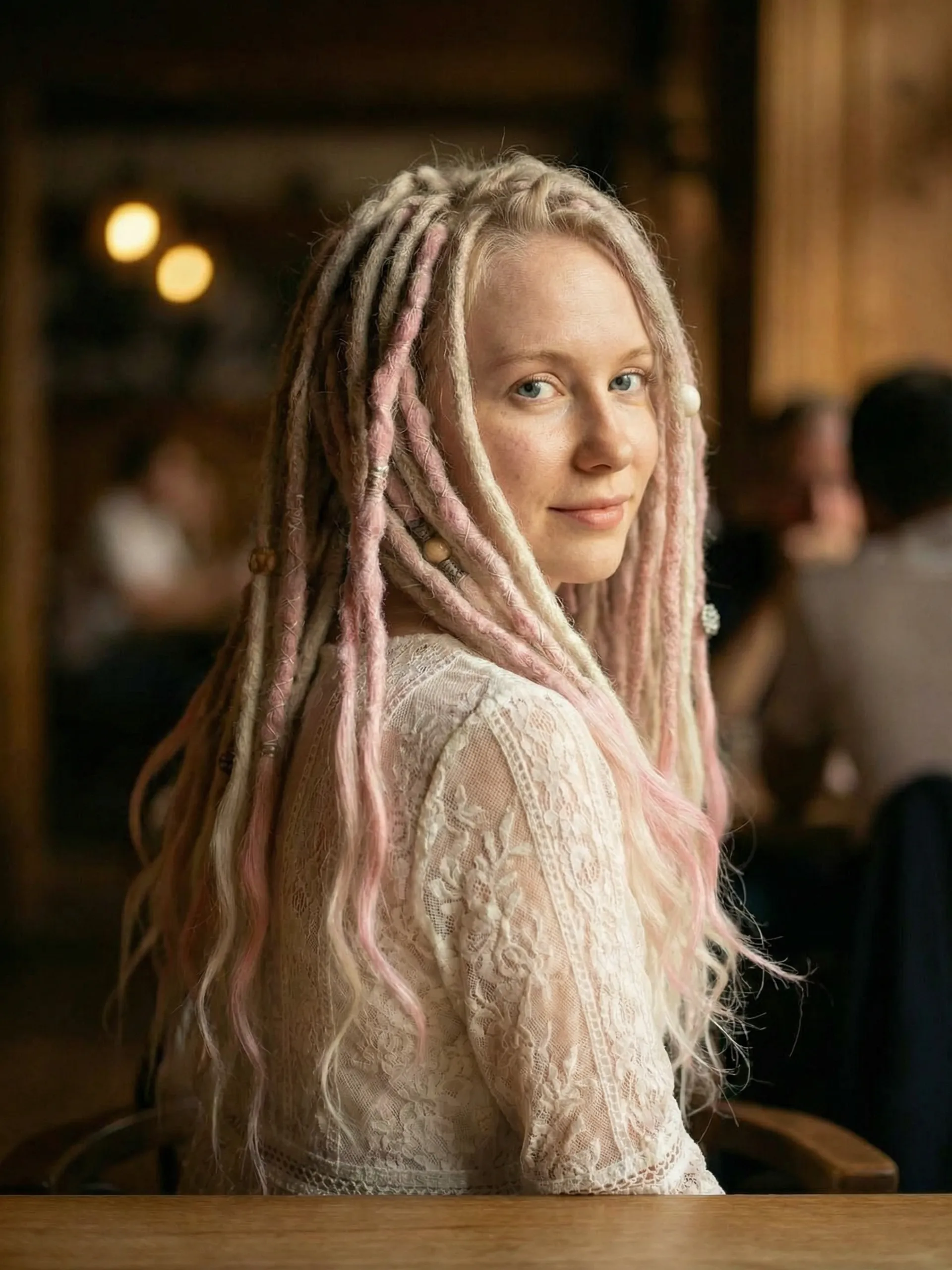 Die Kombination aus Blond und Rosa passt zur Festivalsaison, zu Boho-Brautlooks und zu allen, die weiche Pastellästhetik mit Charakter lieben. Das Zusammenspiel von kühlem Platin und warmem Rosa verleiht eine spielerische Dimension, die über Jahreszeiten und Anlässe hinweg funktioniert. Entdecke weitere Farben und Texturen in unserer kompletten Kollektion natürlicher Dreads.