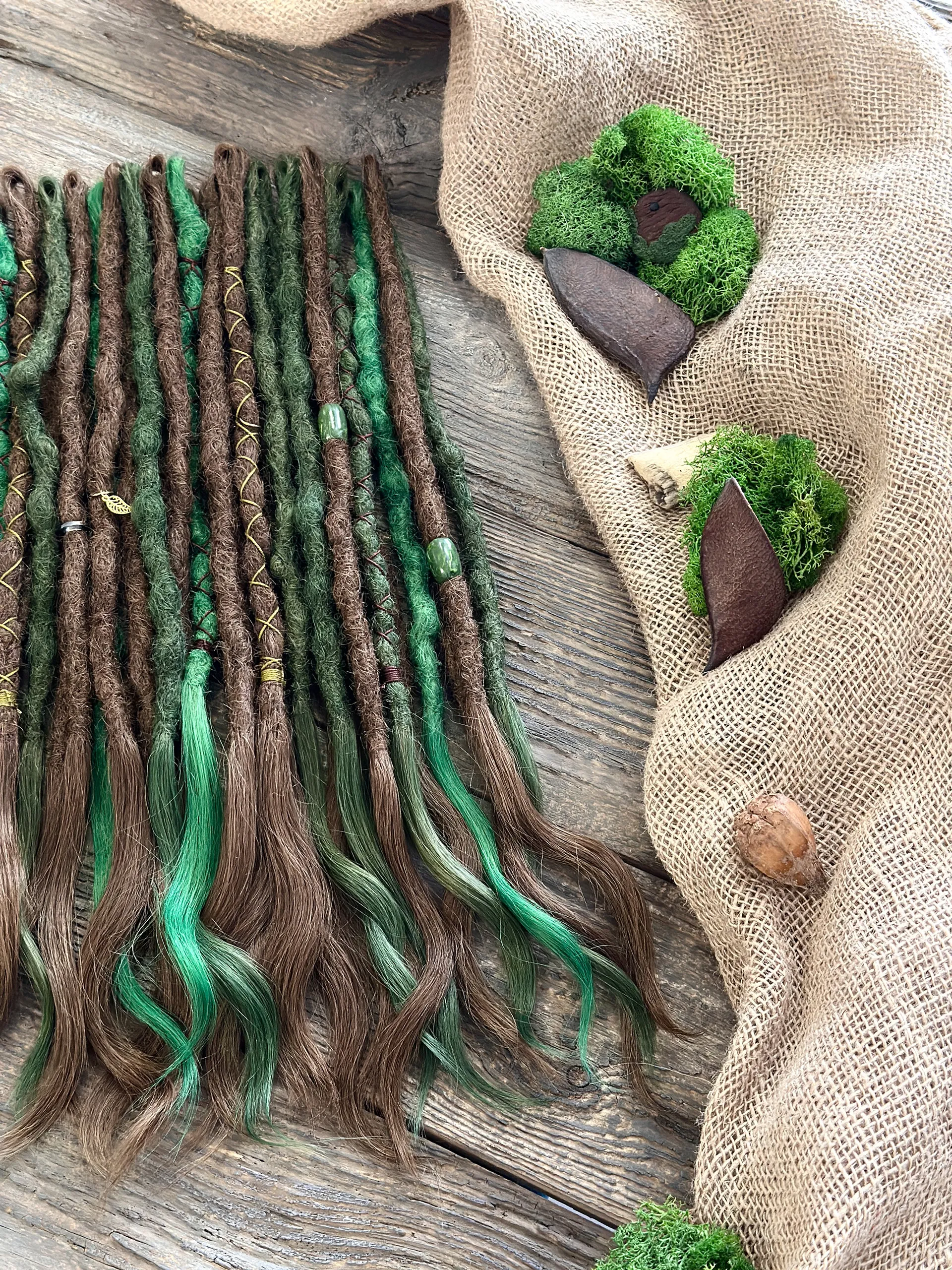 Braun-Smaragdgrüne Dreadlock Extensions aus Echthaar